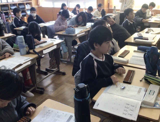 算数の時間に、そろばんの学習を行いました。そろばんの仕組みや数の入れ方・はらい方を学び、簡単なたし算やひき算の練習にも取り組みました。