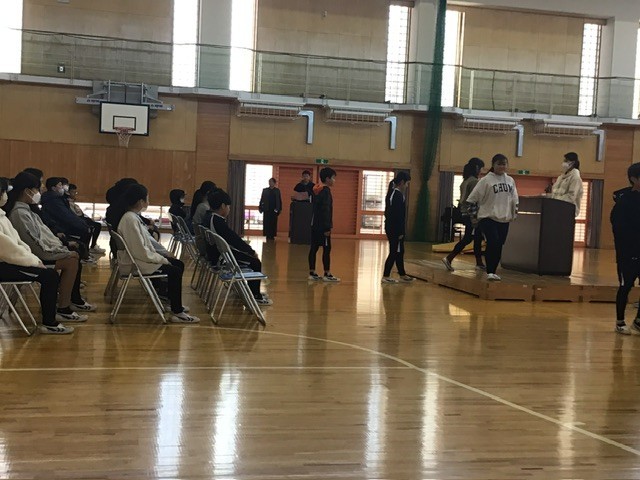 2年生が、心をこめて6年生の似顔絵を描いてくれました。さらに、絵の下には3年生が習字で書いた名前が貼られています。下級生みんなで協力してつくった、あたたかい卒業プレゼントになりました。6年生は、卒業式の練習に真剣に取り組んでいます。