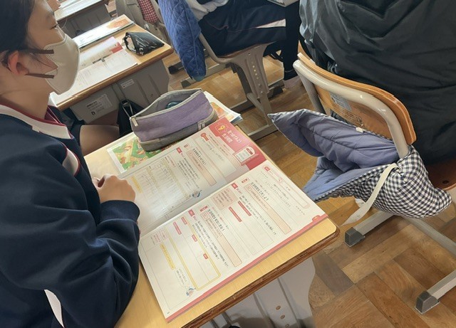 家庭科では「見つめてみよう 生活時間」の学習を行い、平日と休日の生活を表にまとめて振り返りました。 学んだことを、これからの生活に生かしていけるとよいですね。