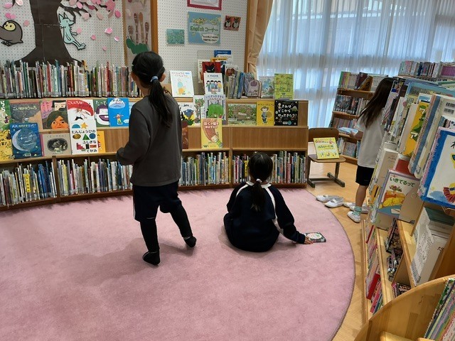 メディアセンターで本の借り方を確認し、学校図書館司書さんから本を借りました。子どもたちは、並んだ本の中からお気に入りを探す時間を楽しみながら、思い思いに2冊の本を選んで借りていました。