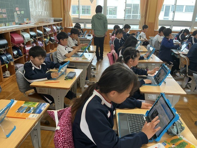理科の時間に、観察した内容を学習用タブレットにまとめました。 季節の変化によって、生き物の様子がどのように変わっていくのか、これからも継続して観察していきます。