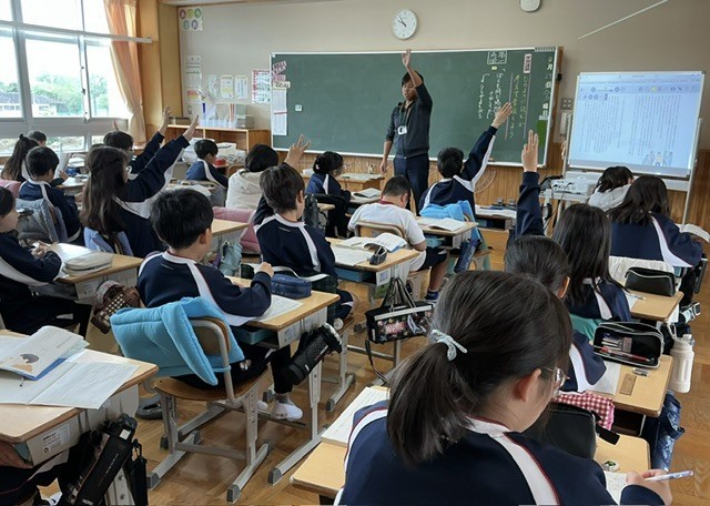 国語の学習で「おにぎり石の伝説」を音読し、人物の心情がより伝わる読み方について考えました。場面の様子や登場人物の気持ちを想像しながら、どんな声の強さや速さで読むとよいかを考え話し合いました。
