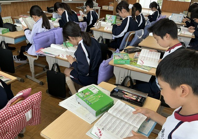国語の学習で、漢字辞典の使い方を学びました。 辞書の引き方には、部首・音訓・総画数などの方法があることを知り、実際に自分で漢字を調べる練習にも取り組みました。