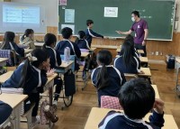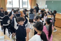 外国語活動では、ペアになって自分の名前を英語で紹介し、相手からサインをもらうゲー...
