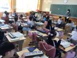 4年生の音楽の授業です。旋律の変化に着目をして「山の魔王の宮殿にて」という曲を...