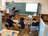 4年生の社会科の授業です。国際交流に取り組む豊橋市について、外国人の人口のグラ...