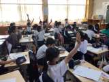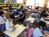 6年生の外国語の授業です。持ち物について、どこの国製かを尋ねて答える活動を行っ...