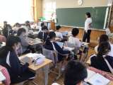 5年生の社会科の授業です。資料を見て気付いたことを発表し、それをみんなで確かめ...