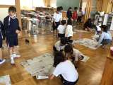 4年生の算数の授業です。1平方メートルの大きさを体感できるように、実際に新聞紙...