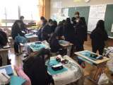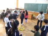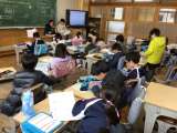 5年生の音楽の授業です。日本の楽器を体験する学習で、お琴の体験をしていました。...