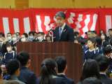 校長が式辞を述べ、来賓代表にご祝辞をいただきました。今年度は特別に、豊田市長様...