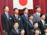 校歌を全員で歌い、卒業生の退場の場面です。拍手の中、一人一人ゆっくりと胸を張っ...
