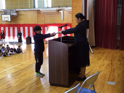 学年ごとに修了証を受け取りました。どの子も1年間よく頑張り、いろいろなことがで...