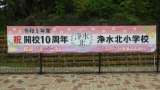 少し前から、10周年の横断幕を掲げています。正門の前と北門入ってすぐの校内の横...