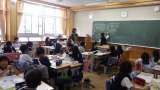 5年生の家庭科の様子です。お茶の入れ方の勉強でした。実習をする前に、やけどをし...