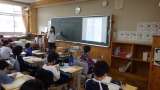 6年生の外国語の授業です。自己紹介のリスニングをした後、自分の誕生日や好きなこ...
