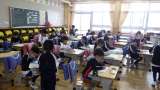 耳の検査の様子です。保健室前で静かに待っていて、自分の順番がくると中に入って検...