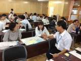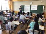 4年生の研究授業をもとに、子どもたちの下校後、教職員が協議会を開いて勉強をして...