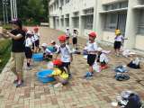 1年生の生活科の授業です。しゃぼん玉遊びをしていました。学校で用意した物以外に...