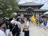 大仏殿の中で解散し、グループ行動です。鹿と戯れたり、お土産を買ったりしながら、...