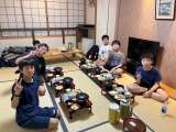 荷物整理をして、広間に集合し、パスの到着を待っています。この後、旅館を出て、清...