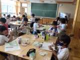 3年生の図工の授業です。ペットボトルや牛乳パックを土台にして、紙粘土をよく練っ...