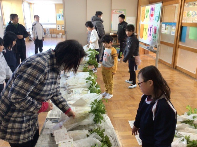 おひにこ学級の子どもたちが、畑で育てた大根を教職員に販売しました。立派な大...