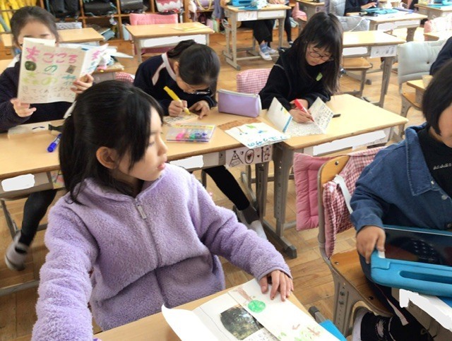 国語では、資料と関連付けて自分の考えを話す学習に取り組んでいました。子ども...