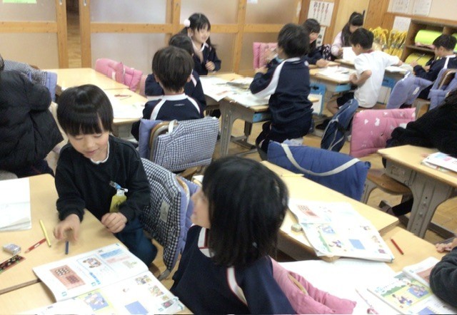 算数の時間に、大きさ比べの学習をしました。広さを実感できるように、じゃんけんに...