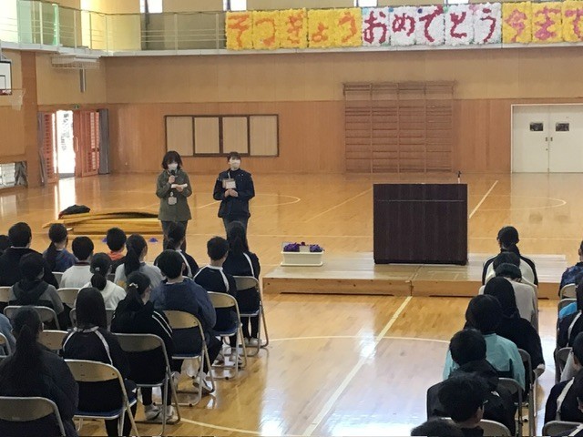 全校児童が体育館に集まり、今年度最後の全校集会を行いました。今回のテーマは、合言...