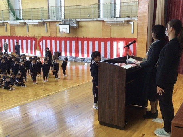 修了式では、学年ごとに修了認定を行い、代表児童が壇上で修了証書を受け取りました。...