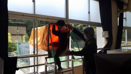 救助袋体験では、1〜3年生は音楽室から、4〜6年生は図工室から救助袋で脱出しました。救助袋の使い方をしっかりと聞き、体験をすることができました。