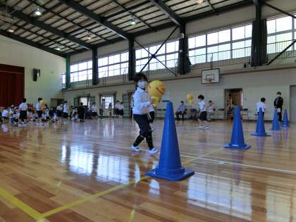 本日、6年生が中心となり、新入生を迎える会を行いました。1年生は、プレゼントでもらったメダルをかけて5・6年生と一緒に入場して、立派に自己紹介インタビューに答えました。その後、ボール運びゲームや言葉を使ったゲームをして楽しい時間を過ごすことができました。これで鷹見っ子の仲間入り!!