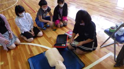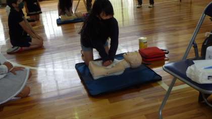 消防署の職員の方を講師にお招きし、救急救命講習を受けました。講習では、要救助者の意識の確認や胸骨圧迫の仕方、AEDの使い方について学びました。胸骨圧迫とAEDの使い方は、実技を交えて学習しました。