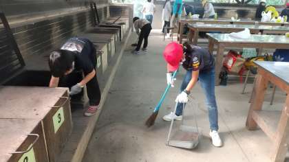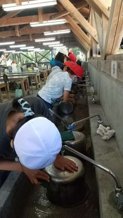 かまども掃除が終わり、今から探検ビンゴに出発です。