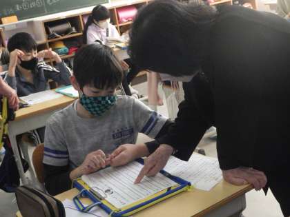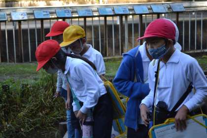 本日、講師の先生をお招きして、俳句教室を行いました。ビオトープやわくわく山に行き、秋の自然の様子を五感を使って感じ、俳句にしました。高学年は、作った俳句を持ち寄り句会を開きました。特選は、かんなさんでした。「ふめばなる 落ち葉の声 サクサクと」
