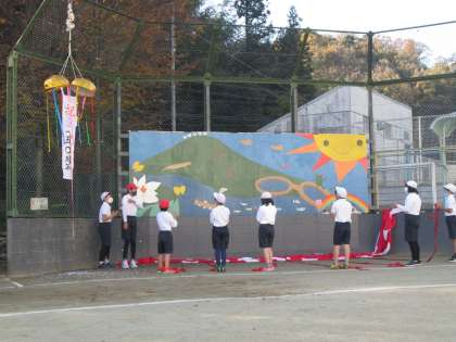本日、八木議員をはじめ、多くのご来賓の方に来ていただき、盛大に創立150周年記念式典を行いました。児童代表の立派なあいさつやバックネットボードの除幕などで、上鷹見小学校の150歳のお誕生日を祝うことができました。