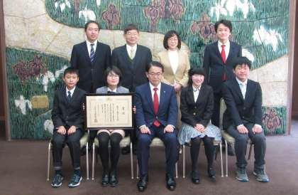 3月25日(金)、「全国学校・園庭ビオトープコンクール2021」文部科学大臣賞受賞の報告に、大村愛知県知事を表敬訪問しました。表敬訪問では、コンクール発表大会に参加した4名の卒業生が本校のビオトープ活動や学習について発表し、大村知事から受賞のお祝いの言葉をいただきました。