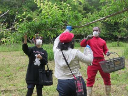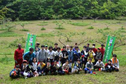 5月17日(火)、5・6年生がオイスカ勘八農場内の梅園で、小梅の収穫作業のお手伝いをしました。オイスカ研修センターの筑田さんから収穫方法の説明を聞き、少し赤く色づいた実を採りました。高い所の実は大人の人に枝を持ってもらったり、脚立を使ったりして採りました。フィリピン、フィジー、ミャンマーの研修生の人とも、少しお話ができた子もいました。作業時間は40分ぐらいでしたが、みんな一生懸命やりましたので、たくさん収穫することができました。