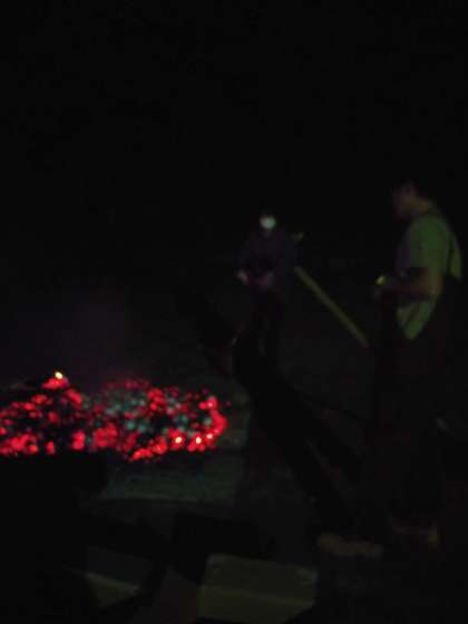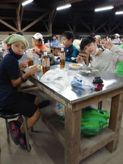 キャンプファイヤーの残り火で、アルミホイルで包んだジャガイモをふかしました。お風呂上がりに、ジャガバターにして食べました。