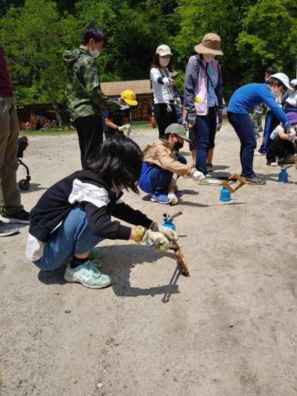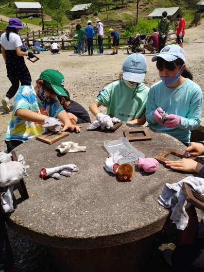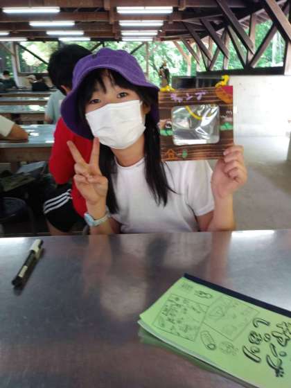 午後から、写真入れを作りました。木の枠をバーナーで焼き、磨いて絵をかいて、キャンプの思い出となる作品を作りました。お土産で持ち帰ります。