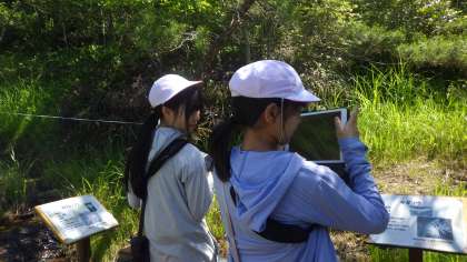 わくわく学習で初夏の上高湿地の見学・調査に行きました。春から夏へと植物の様子が変わってきました。ササユリなど希少な植物を観察することが出来ました。また、気になる植物について学習用タブレットで写真を撮影し、学校で調べていきます。調査したことは、ガイドマップ初夏編に載せていきます。
