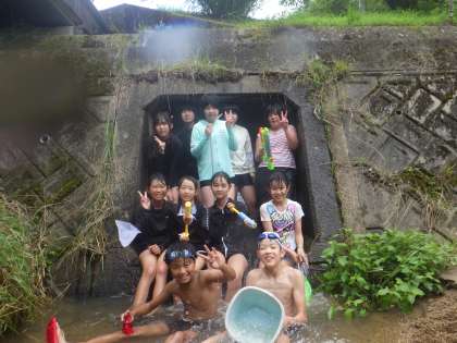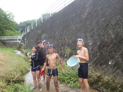 本日、川遊びを行いました。予定では、ビオトープに続く用水路の掃除も行う予定でしたが、熱中症の危険があると判断して川遊びのみにしました。プールとは違う自然の涼を感じました。楽しい思い出の1ページとなりました。