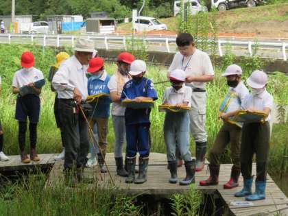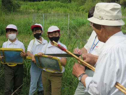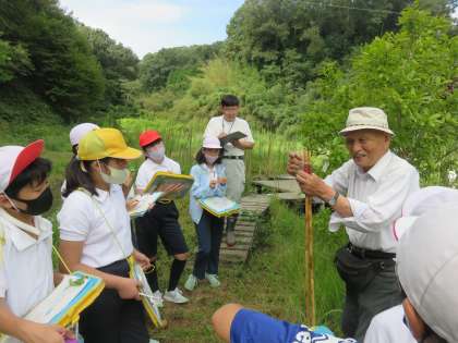 9月9日(金)、5年生がビオトープの植物学習会を行いました。講師は、植物・菌類に詳しい山田弘先生です。学習会では、見るだけでなく、実際に触ったり、においをかいだりして、じっくり観察しました。どうしてそのような名前がついたのかも教えてもらい、植物の名前に興味も沸きました。30分ほどの観察でしたが、40種類以上の野草の名前と特徴を知ることができました。