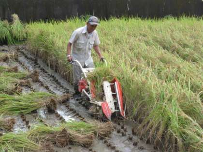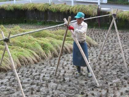 9月16日に4・5年生で学校の田んぼの稲刈りを行う予定ですが、事前の準備で、敏朗さんと幸夫さんが、稲刈りとはざづくりをしてくださいました。ありがとうございました。16日は、田んぼの真ん中の稲を、4・5年生が草刈り鎌を使って刈り取ります。21人で力を合わせてがんばります。