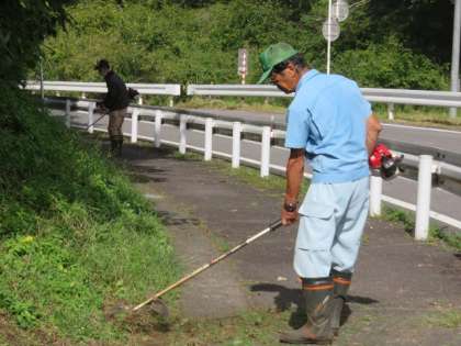 写真は、通学路の草刈り、水路掃除、緑のカーテンの片付けの様子です。暑い中、ありがとうございました。