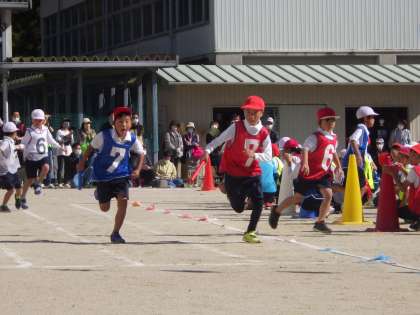 休み時間に何度も練習を重ねてきたバトンパスが勝負の鍵を握りました。真剣な表情がとても輝いていました!!