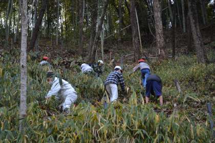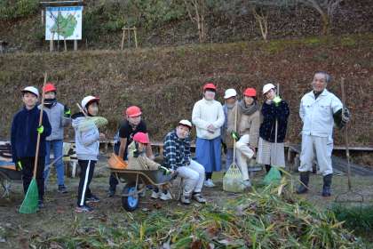 ササユリなど、春の野草の芽生えに備えて、5年生がわくわく山の下草刈りを行いました。寒い中での作業ですので、45分ぐらいで終わる予定でしたが、結局1時間20分ほど作業を行い、片付けまで完璧にできました。鎌の使い方は、稲刈りの経験が生かされ、みんな上手でした。