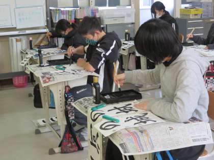 1月10日(火)に、書き初め大会を行いました。練習の成果が出せるように、みんな集中して、真剣に書き初めに取り組みました。子どもたちの力作は、校内書き初め展でぜひご覧ください。