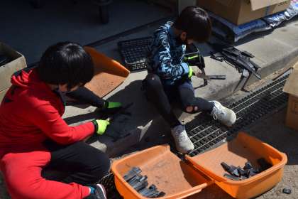 3/1 5年生が竹炭を切りました